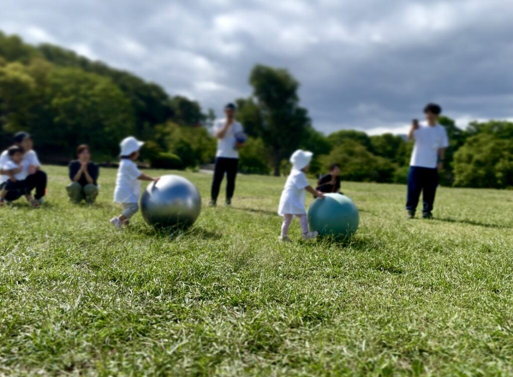 大玉転がしでは頑張って早く転がす子や丁寧にちょっとずつ転がす子など個性が出ていましたよ♡