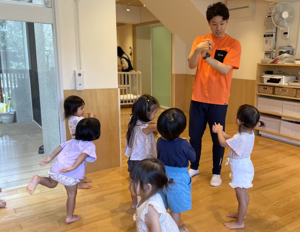 運動あそびを指導しているのは、当園の保育士「別當先生」です。